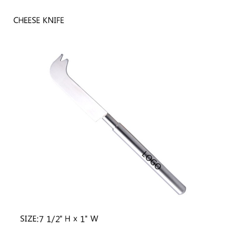 A helpful tool you can cut cheese or other food. Made of Stainless Steel, that it is durable. This product is suitable for people who need kitchen utensils for a long time, such as restaurant/ hotel /Catering Club, etc. Custom logo are available. Screen is a better printing method for Stainless Steel. 7 1/2" H x 1" W. Note: The freight delivering to your office is not included & will quote separately.