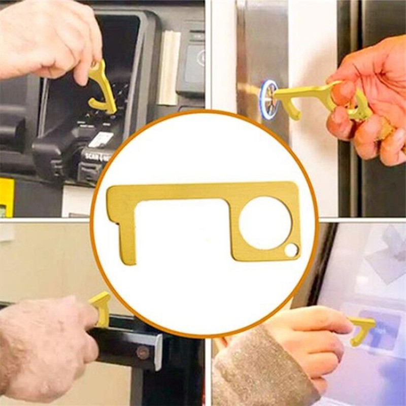 Made from zinc alloy,the non-contact hygiene door/elevator opener is aimed to help you safely avoid direct touch on door handles,elevator buttons and other screens during covid-19 pandemic outbreak.You can print your logo on it, which will be a great popular promotional gifts.It measures 3"x1 1/4" ,easy & portable to hang it in your key chain.Available in brass, gold and silver.The price includes shipping cost to ca.