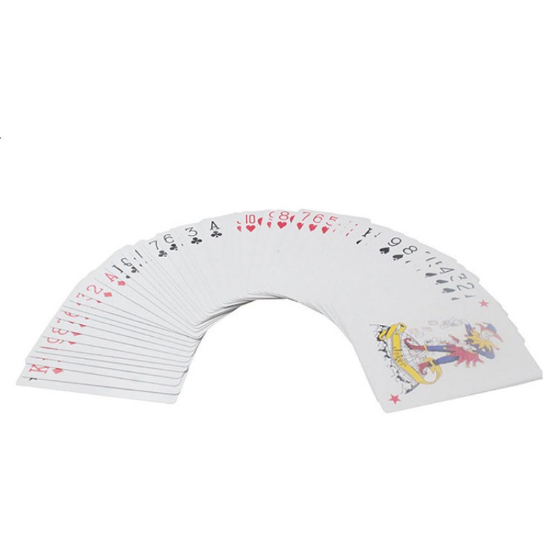 The playing cards are made of 300g paper. This standard size deck includes 54 cards, 52 in the deck and 2 Jokers. Your company name or logo can be custom printed in full color on both of cards front, back and the box.