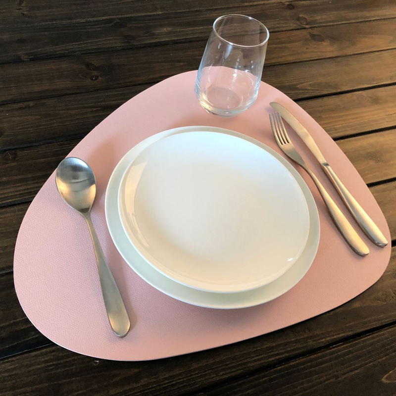 TABLE MATS are made from strong, PU leather. This makes them durable, water and dirt repellent and very easy to clean. has a soft and delicate surface, a matte, dusty look and subtle leather patterns.