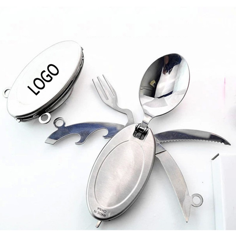 100% Brand New,High Quality Perfect for outdoor activities Saving space, easy to store Contains almost all sppons, cutters you need Convenient and practical Made of high quality stainless steel, very durable Uniquecompact design, no worry of losing a tool This tool is exactly perfect for camping, hiking, or traveling in general