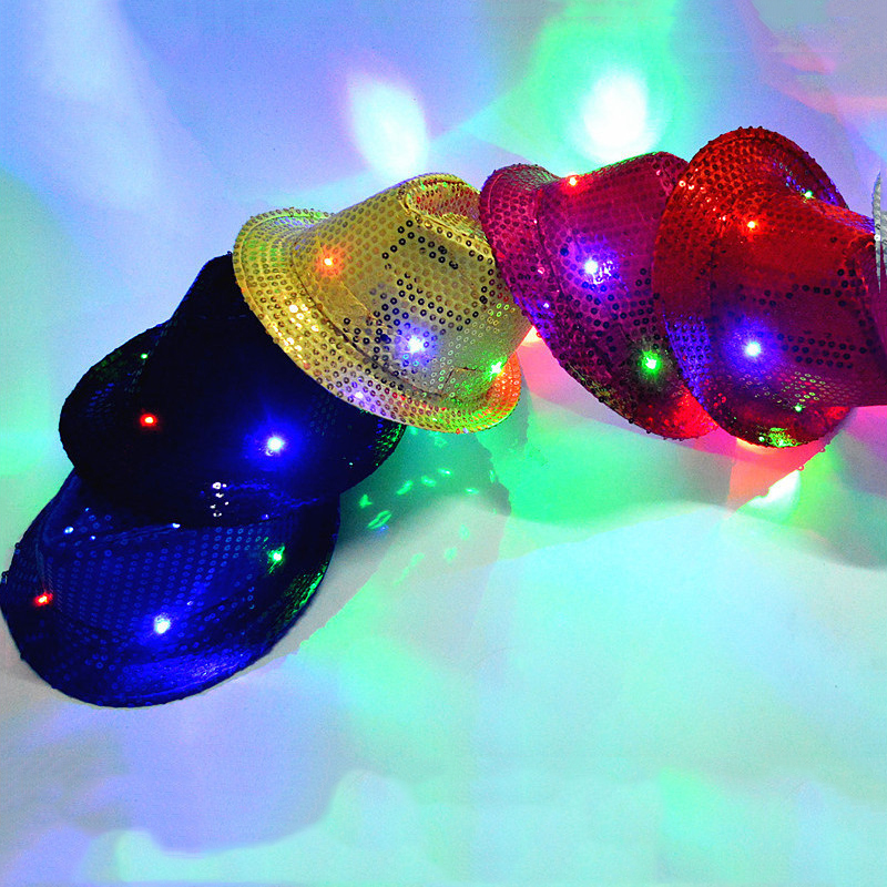 The Sequin Fedora Hats with Flashing LEDs are hot hot hot! Wear this super stylish light up hat at any event! The LEDs reflect off the sequins for an awesome light show. Lit fedoras look great at parties, night time event, out of the town- wherever!