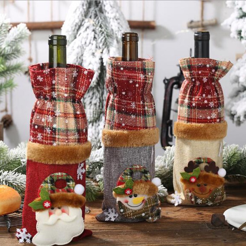 Wine Bottle Covers Christmas Decorations for HomeSanta Claus Wine Cover Bags Sack Banquet Dinner Decor Great decoration to boost up your holiday spirit. Perfect for decorating the red wine and then enjoy your dinner. Most suitable for Christmas Day use, such as dinner, party, etc.